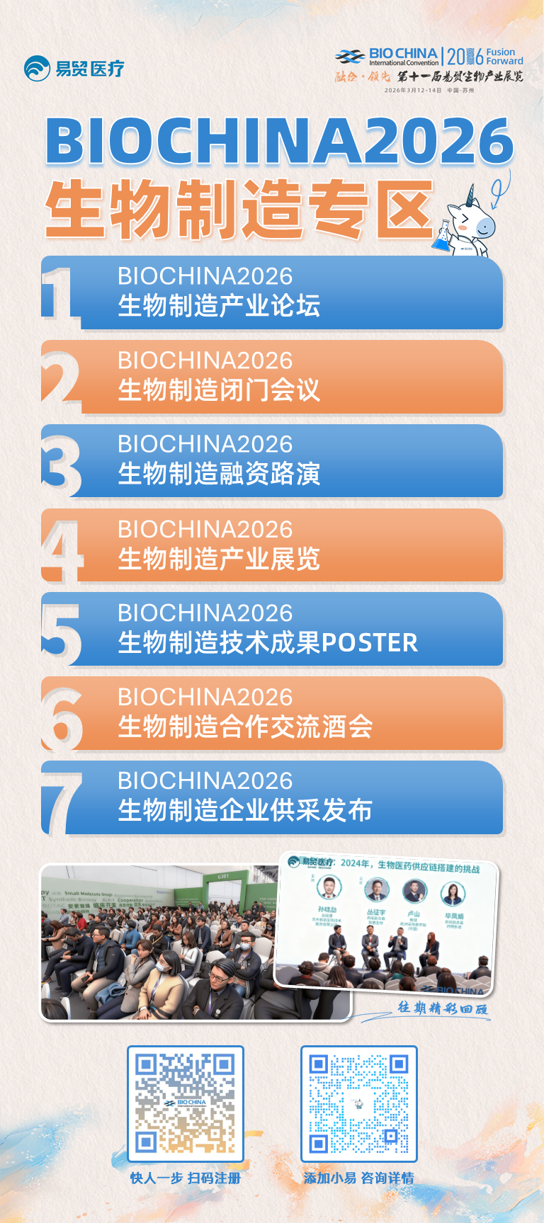 在此背景下,BIOCHINA2026 首次特设生物制造专区,以全链条赋能产业发展为核心,打造涵盖七大核心环节的立体化交流平台,构建 “技术交流 — 成果转化 — 资本对接 — 商业合作” 的完整生态闭环。