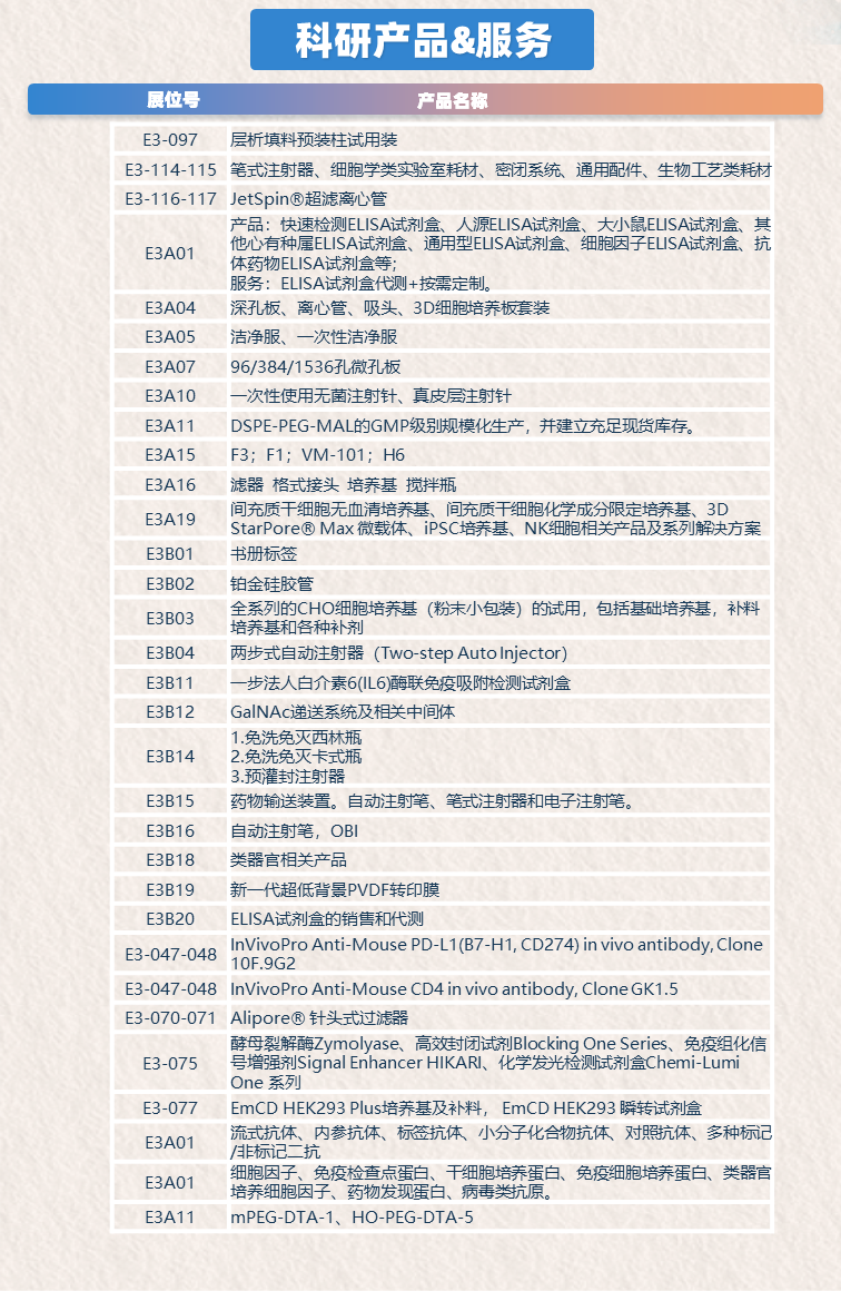 从药物研发早期的靶点筛选、工艺设计,到临床前研究、中试放大,再到商业化生产与申报支持,综合馆汇聚了覆盖全流程的一站式解决方案,让科研之路更高效。
