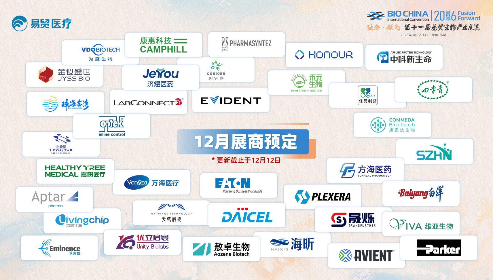 BIOCHINA2026(第十一届)易贸生物产业展览将于3月12-14日在苏州国际博览中心举办。随着展会招商回传工作的推进,短短两周内,新增50家展商确认参展!这些企业的加入,为BIOCHINA注入了更多专业力量,目前展位已余量不足!
