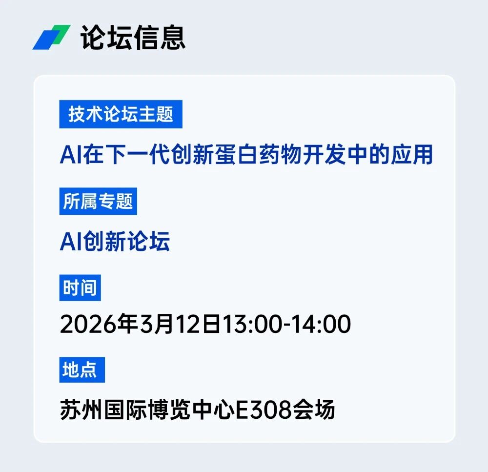 3月12日,天鹜科技特邀行业顶尖专家学者、企业领军者,将在“AI创新论坛”的专题中,举办名为“AI在下一代创新蛋白药物开发中的应用”的论坛,围绕AI在下一代创新蛋白药物开发中的核心应用展开深度研讨,解析技术瓶颈与突破路径,分享前沿实践经验。