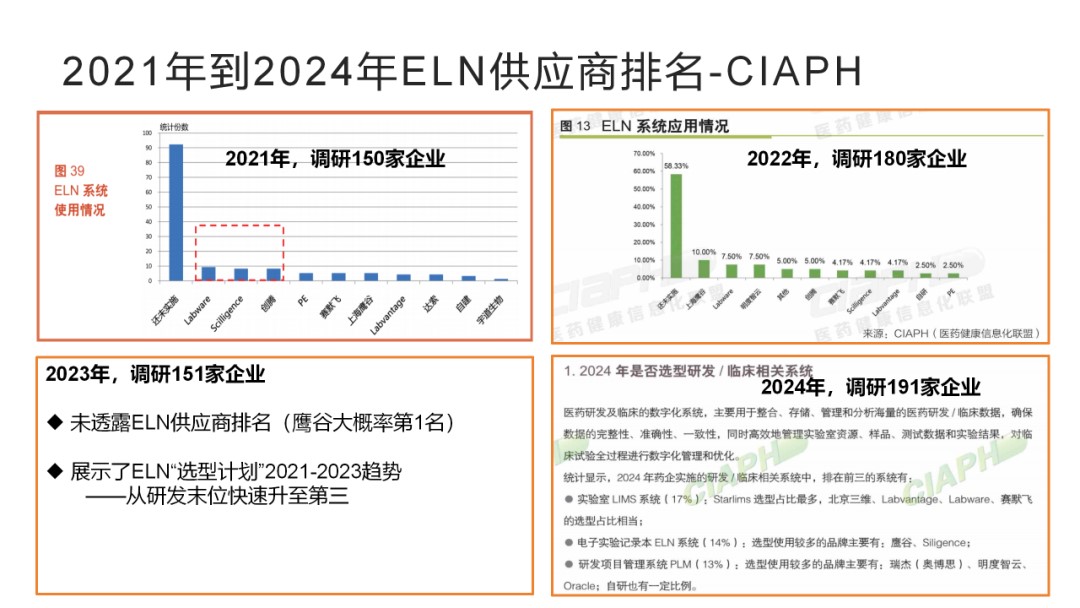 图:2024年CIAPH医药数字化调研报告中,鹰谷和Scilligence是最受欢迎的两家ELN供应商