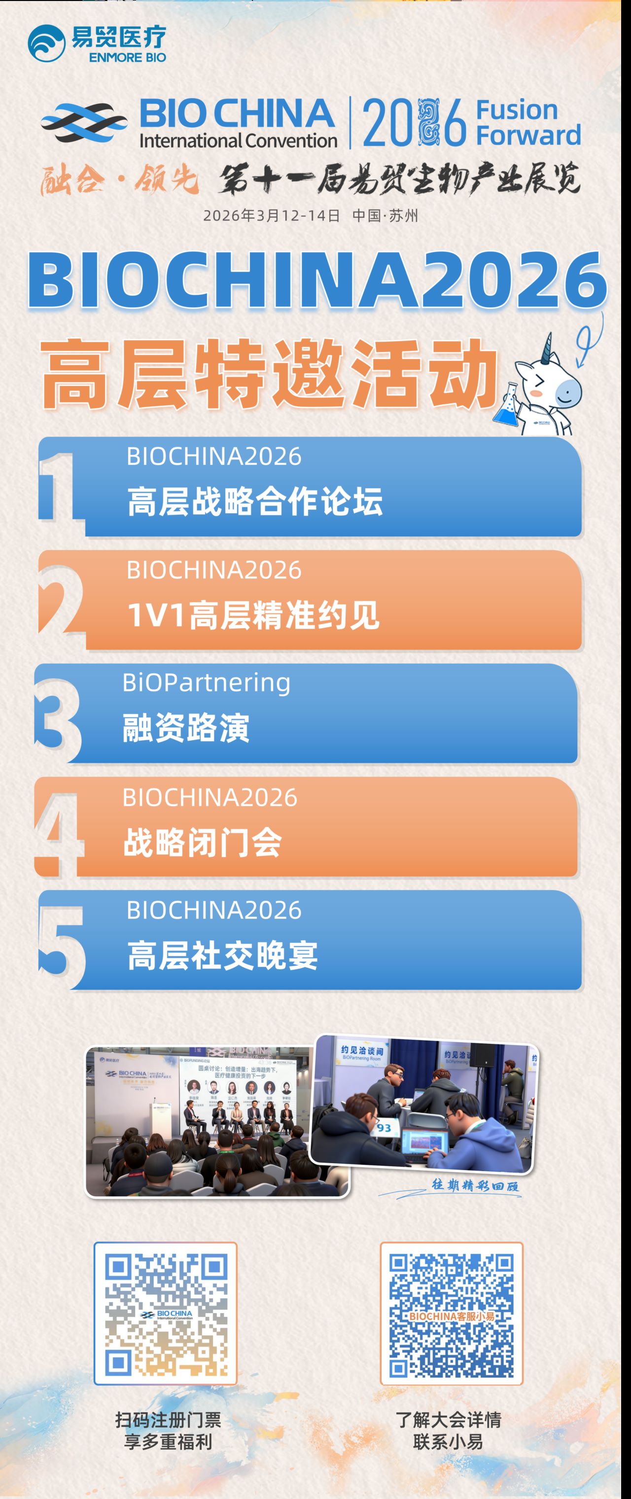 这里有巨头企业的战略布局风向,有前沿赛道的技术突破成果,更有海量高价值的合作机遇。3月12-14日,苏州国际博览中心,BIOCHINA2026 邀您与全球生物医药领军者面对面,共探行业发展新机遇,共赢全球市场新未来!