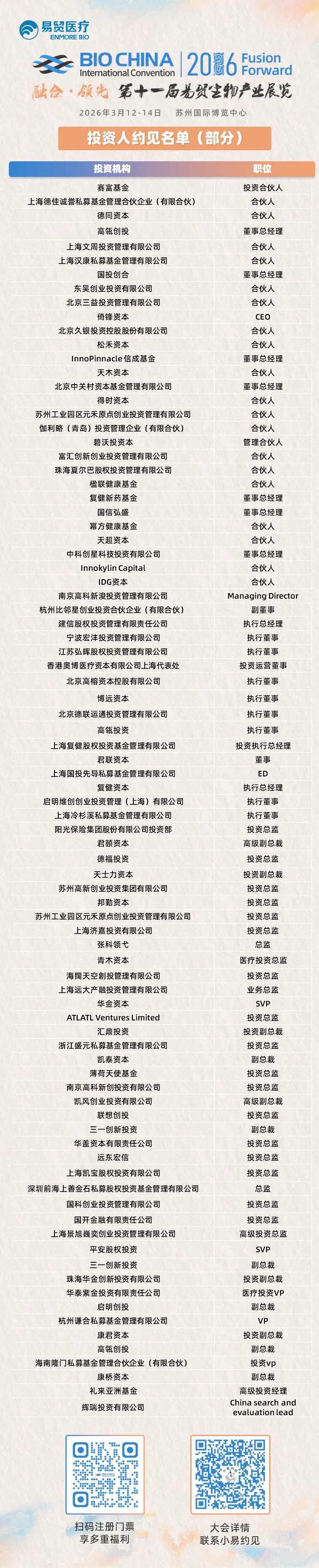 谁说初创Biotech融资难?2000+投资人在BIOCHINA2026等你来!