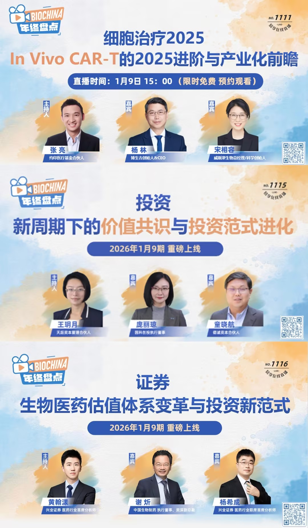 目前,易享生物医药2025年终直播盘点回放已上线,覆盖生物医药九大核心赛道,汇聚行业资深嘉宾,系统复盘2025年生物医药行业一二级市场布局逻辑,精准预判2026年行业前沿发展机遇。锁定易享平台,扫码观看直播,解锁全年核心干货,助力精准布局、把握行业先机。