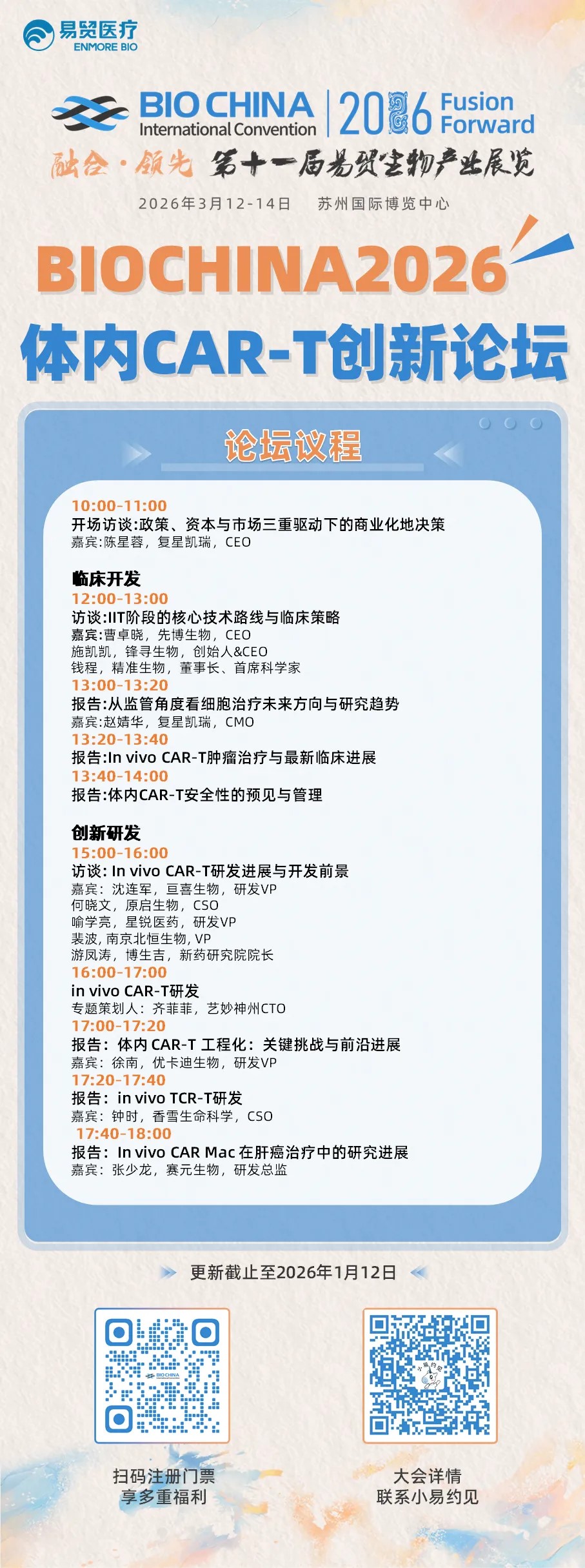听说你们都在关注体内CAR-T?路铺好了,就差你了 | BIOCHINA2026